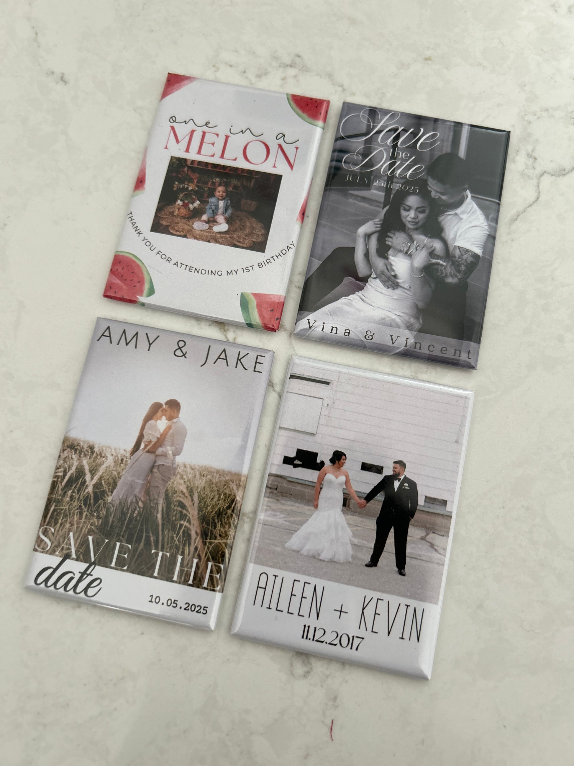 Looking to add a unique touch to your special occasion? Check out our BULK BUY option for personalized magnets! Create unforgettable moments and make announcements in style with our magnets, now available at an amazing discounted price (min qty: 25 magnets). Perfect for Save the Dates, Birthdays, Birth Announcement Souvenirs and many more!